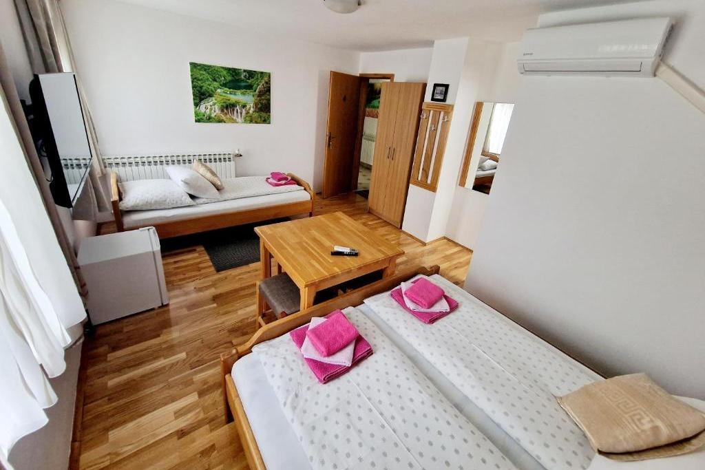 House 25059 in the town of Jezerce, Plitvice - Lika and Gorski kotar, offers accommodation of type Room (6). As the house is dividedseveral apartments, other guests are likely to be present during your holiday. The hosts reside in the house. The house owner is under no obligation to accept additional persons and pets that were not stated in the reservation request and it is necessary to report them in advance.AMENITIES Infield (Well-equipped), Courtyard (200m2, Sitting area), Parking lot (Number of parking spaces: 15, Distance from the house: In the courtyard), Breakfast, WiFi Internet, Laundry service, Hairdryer, Baby cot LOCATION AND ACCESS Facility is situated near a local road Car access possible: Yes The facility is situated in relatively quiet surroundings The property is surrounded by greenery DISTANCES Center: 14 km Shop: 3 km Urgent medical care: 14 km Pharmacy: 14 km Exchange office: 14 km ATMBank machine: 4 km Tourist info: 16 km Gas station: 13 km