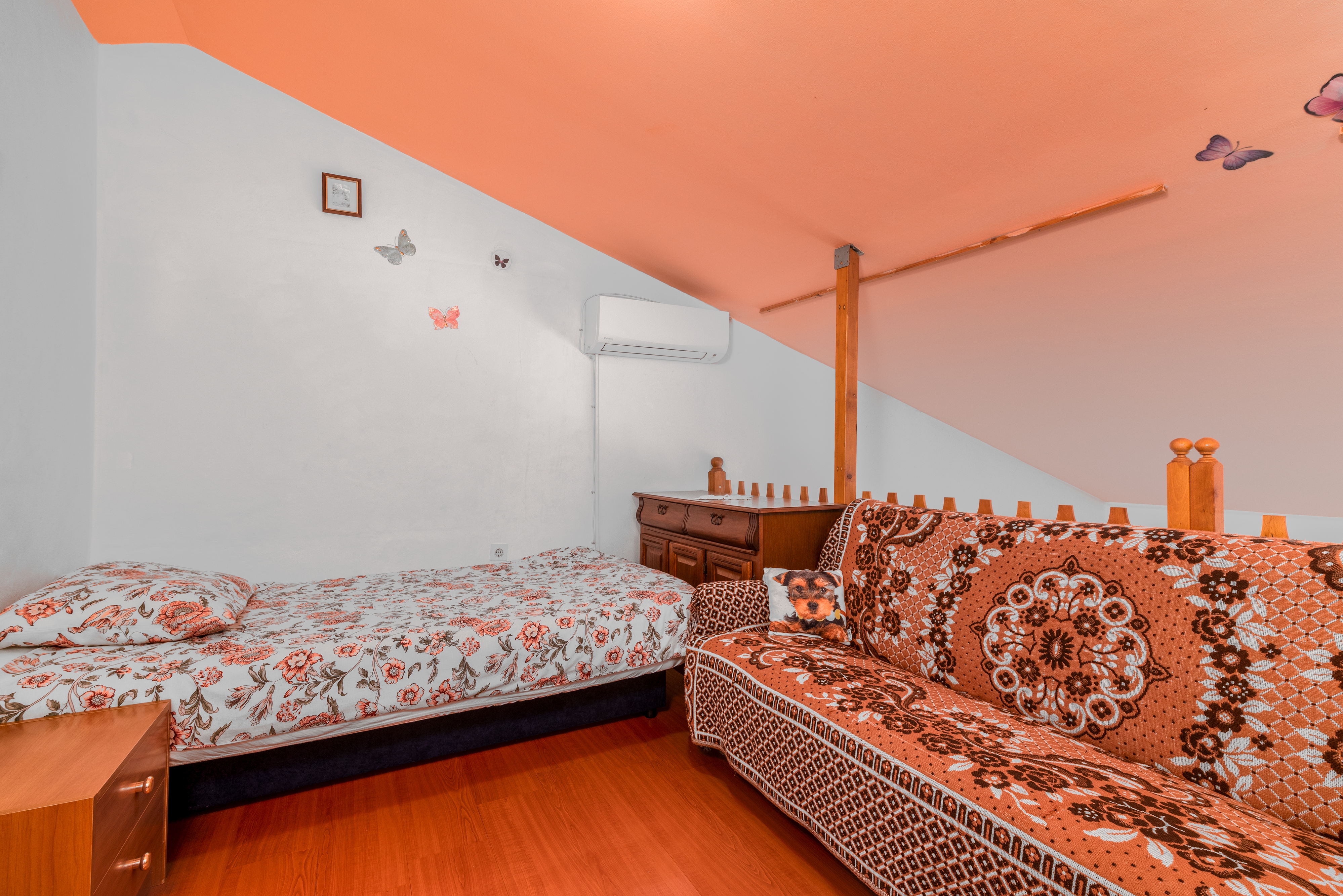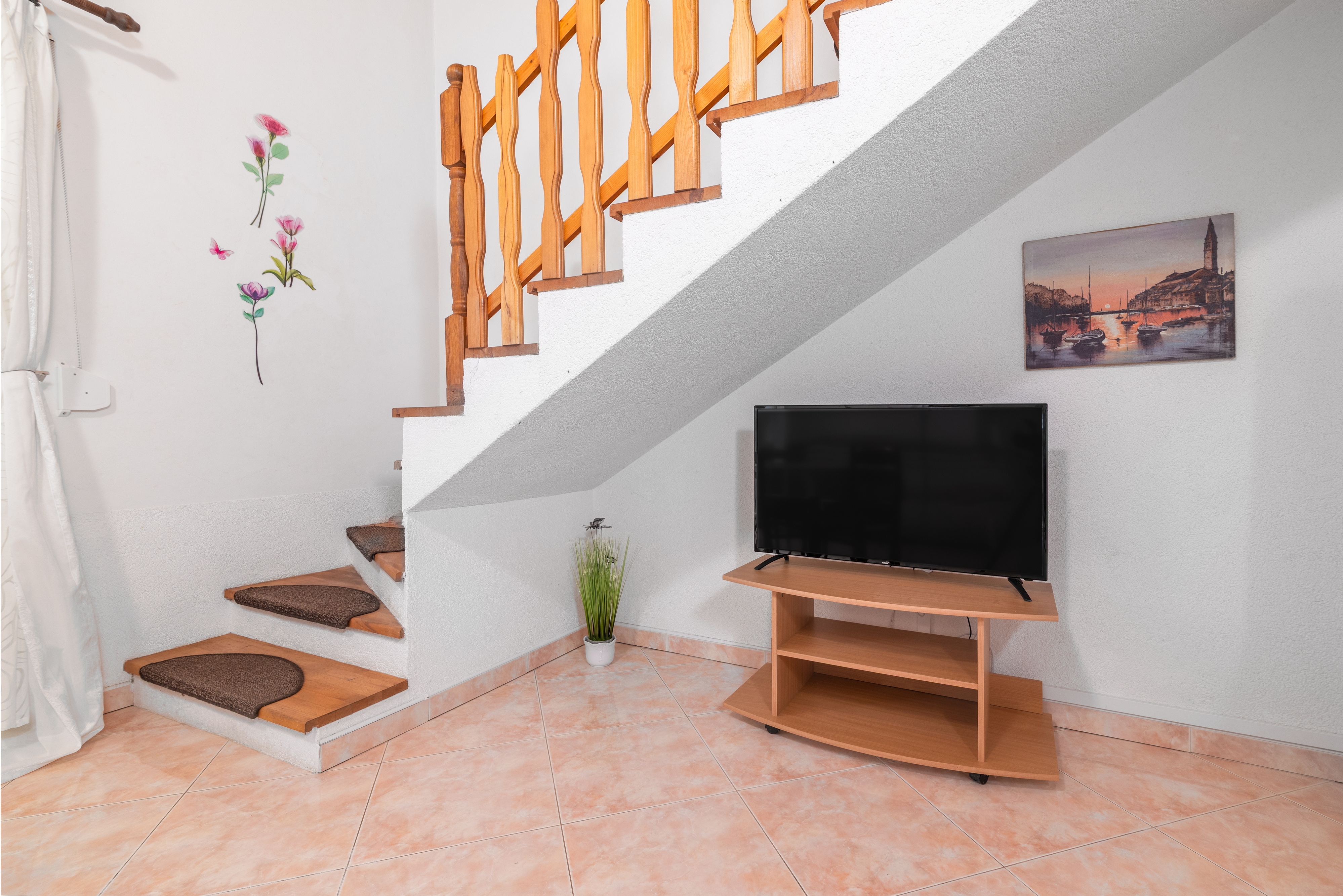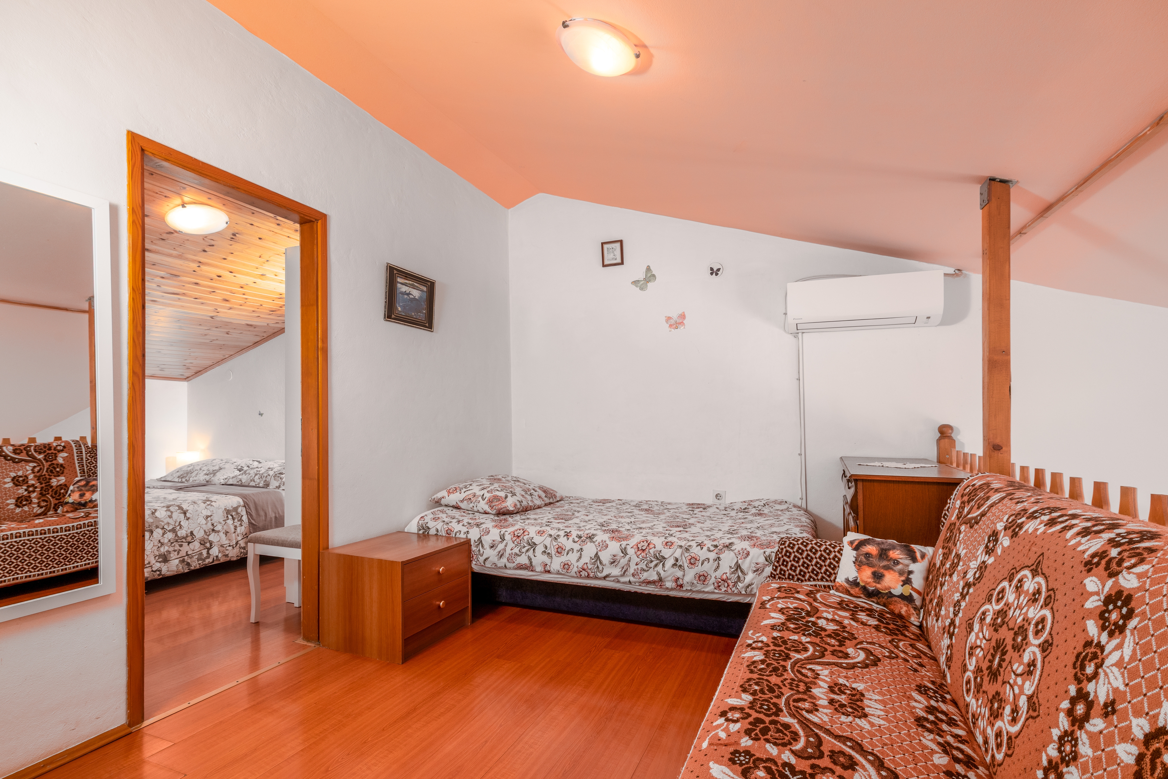 Apartment can accommodate 6 guests. Beds are situated in 2 sleeping rooms, but also in the living room, within 65m2. Guests can use a private terrace to enjoy the warm summer evenings. Food can be prepared using barbecue which is shared with other guests too. Shared pool is on disposal during stay. This accommodation unit welcomes pets at an additional charge. For the booked accommodation unit the deposit is paid directly to the owner upon check-in (deposit amount is displayed on the website) INCLUDED IN THE PRICE: tourist tax, final cleaning, air-conditioning, pool, parking, internet, baby cot, iron, ironing board, hairdryer, portable barbecue, sunshade, sunchairs. OBLIGATORY ADDITIONAL COSTS: deposit (€100.00 one-time payment). OPTIONAL ADDITIONAL COSTS: laundry (€5.00 washing), pets (€10.00 per night). The availability of additional services for your chosen dates of stay, as well as their prices (if none are listed) must be checked ahead of time. Any additional services not shown in the price calculation are payable directly to the property owner and only if used by the visitor. Discounts to the base price: free day 14=13 (for reservations of 14 or more days you get one free day for the stay until 31122026).