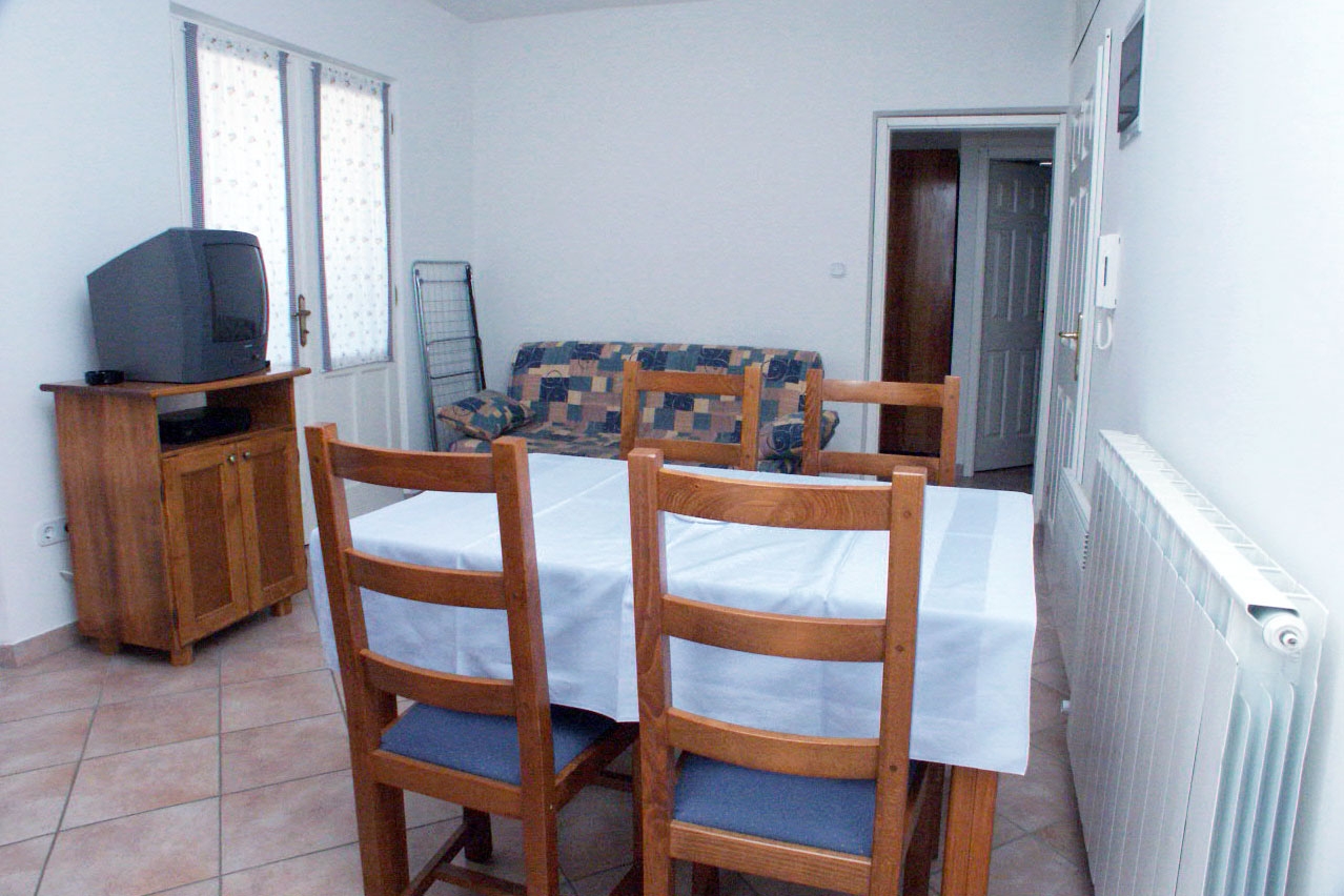 Apartment can accommodate 6 guests. Beds are situated in 2 sleeping rooms, but also in the dining room, within 48m2. Guests can use a private terrace to enjoy the warm summer evenings. Food can be prepared using barbecue which is shared with other guests too. This accommodation unit welcomes pets at an additional charge. INCLUDED IN THE PRICE: final cleaning, central heating, internet, baby cot, iron, ironing board, hairdryer. OBLIGATORY ADDITIONAL COSTS: tourist tax (adults €0.93 - €1.60 nightperson, discount for children aged 12 - 17), short stay fee (surcharge depending on a number of booked nights: 30% - 1, 20% - 2, 10% - 3). OPTIONAL ADDITIONAL COSTS: air-conditioning (€5.00 per night), pets (€5.00 per night). The availability of additional services for your chosen dates of stay, as well as their prices (if none are listed) must be checked ahead of time. Any additional services not shown in the price calculation are payable directly to the property owner and only if used by the visitor.