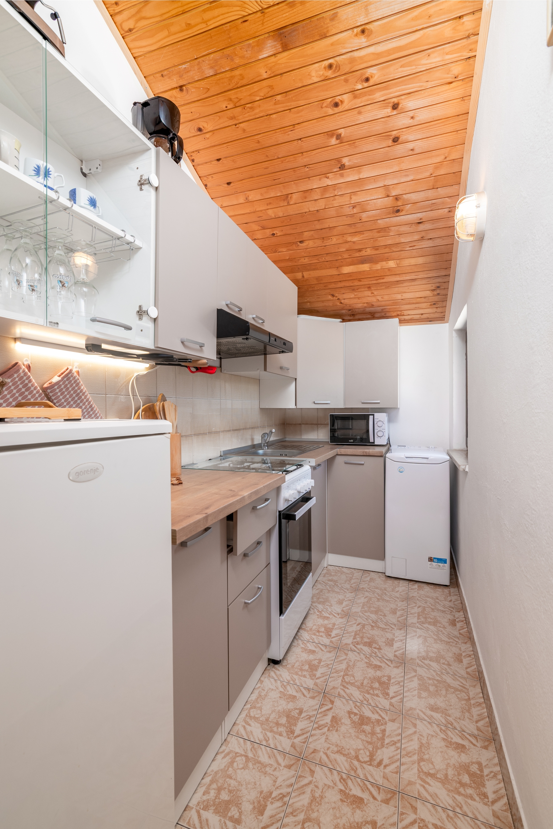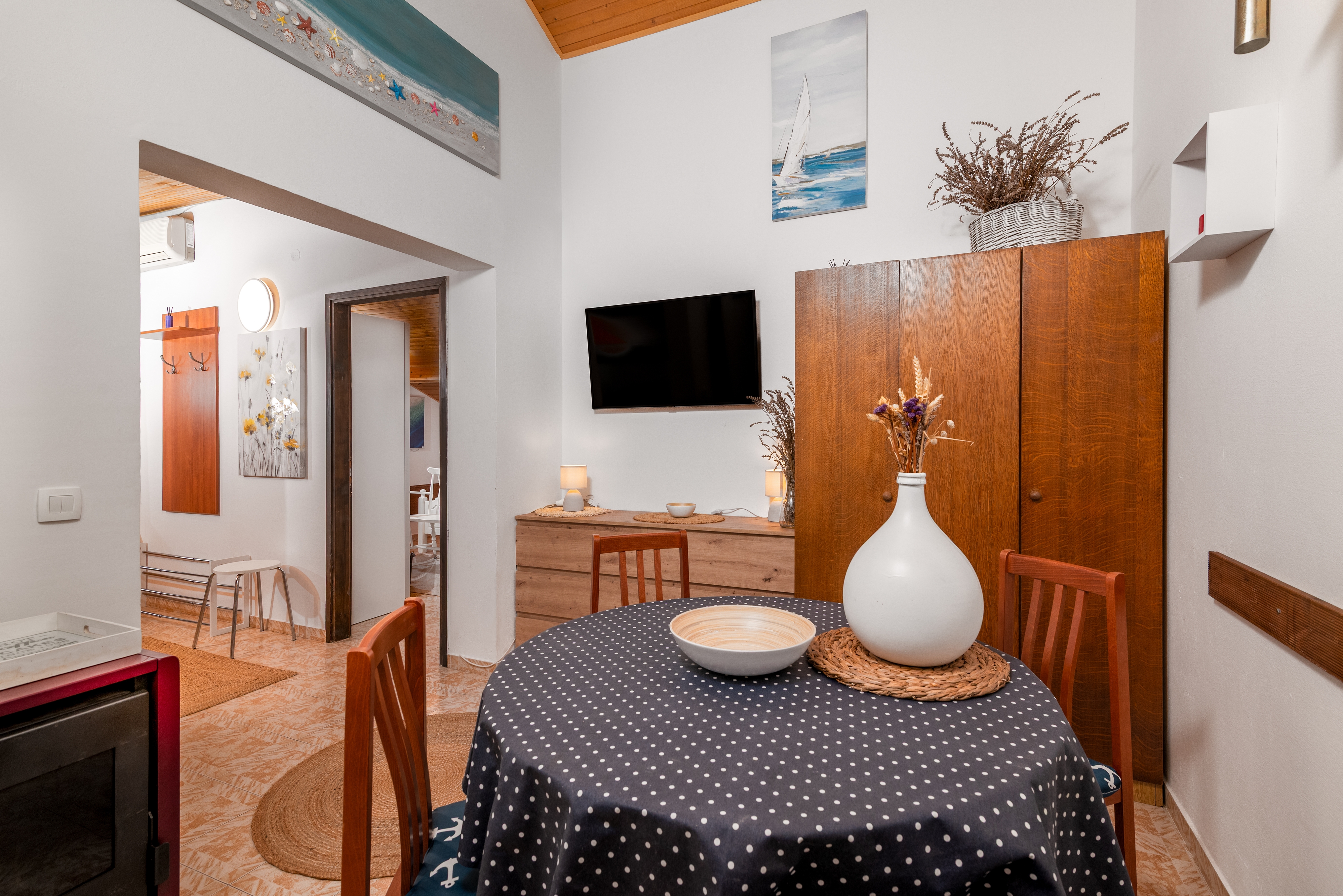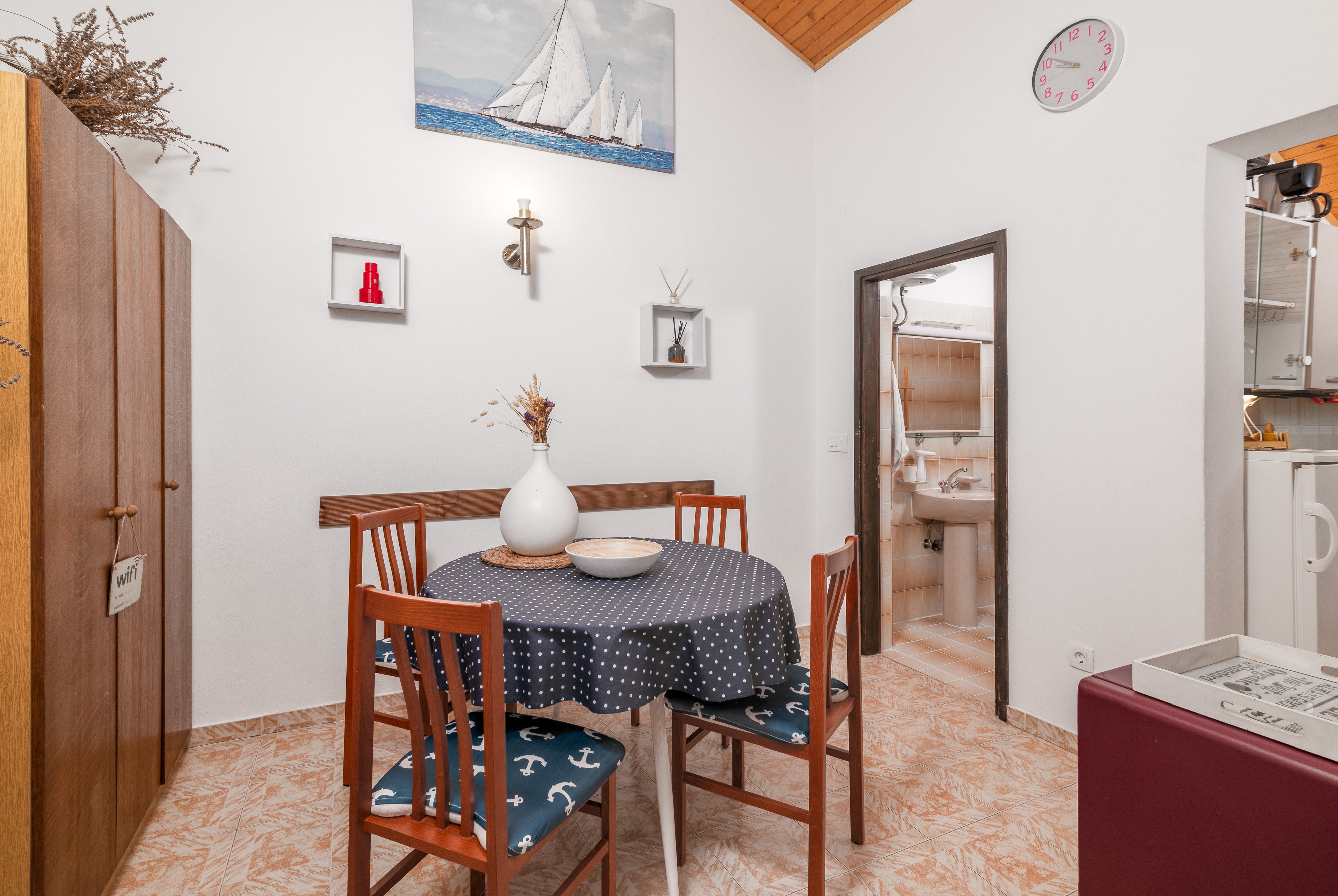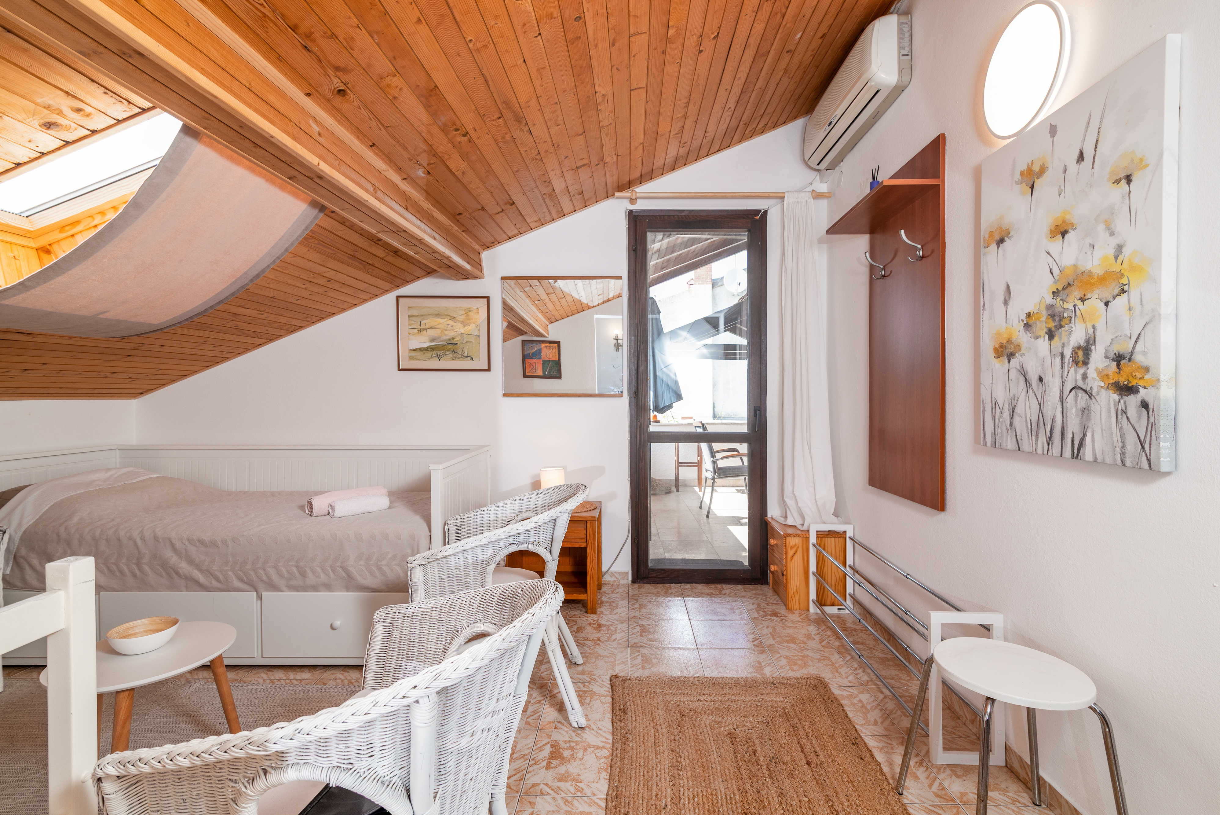 Apartment can accommodate 4 guests. Beds are situated in 1 sleeping rooms, but also in the living room, within 46m2. Guests can use a private terrace to enjoy the warm summer evenings. Food can be prepared using barbecue which is shared with other guests too. This accommodation unit welcomes pets at an additional charge. INCLUDED IN THE PRICE: tourist tax, final cleaning, air-conditioning, central heating, parking, internet, iron, ironing board, hairdryer. OPTIONAL ADDITIONAL COSTS: pets (€5.00 per night). The availability of additional services for your chosen dates of stay, as well as their prices (if none are listed) must be checked ahead of time. Any additional services not shown in the price calculation are payable directly to the property owner and only if used by the visitor.