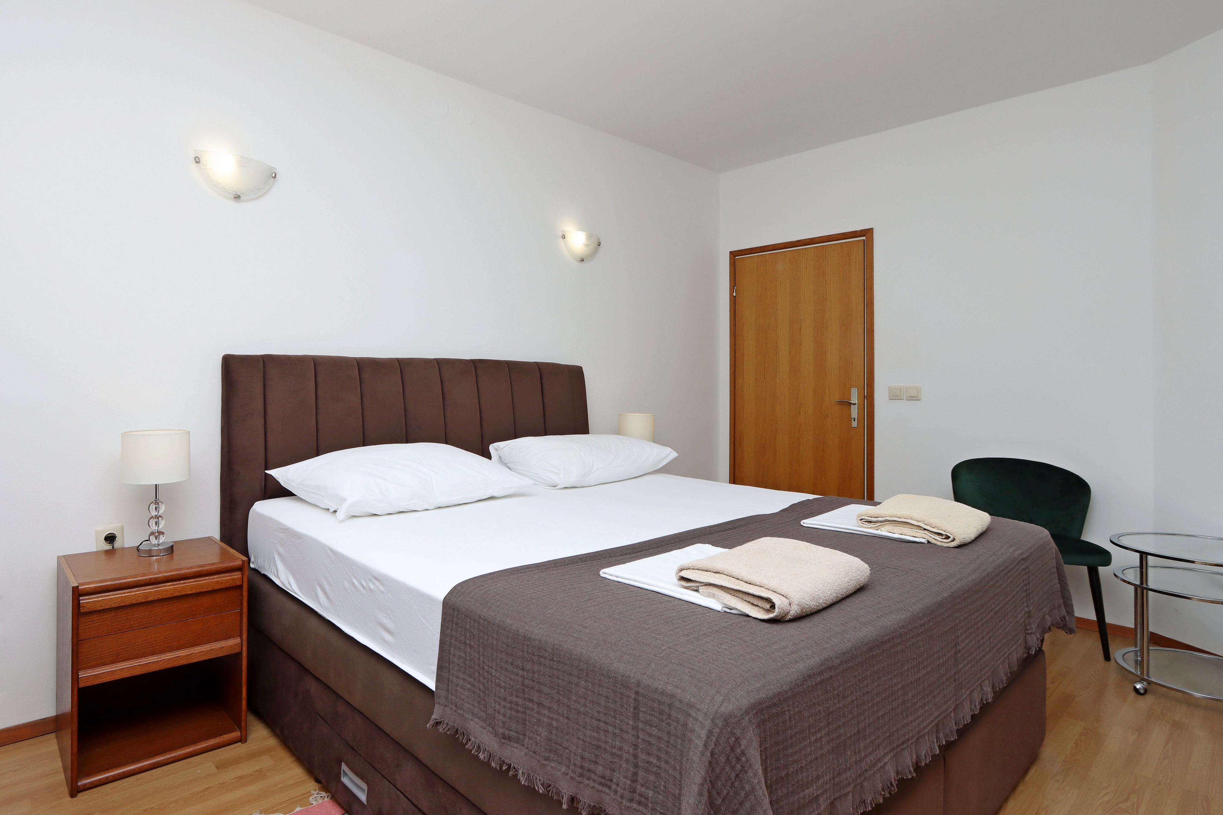 Apartment can accommodate 4 guests. Beds are situated in 2 sleeping rooms, within 58m2. Guests can use a private terrace to enjoy the warm summer evenings. The apartment offers the sea view. Food can be prepared using barbecue which is shared with other guests too. Notthe rooms of the booked accommodation unit are connectedone whole. Some of the rooms of the accommodation unit are not connected with the rest of the unit. INCLUDED IN THE PRICE: tourist tax, final cleaning, air-conditioning, parking, internet, boat mooring, portable barbecue. OBLIGATORY ADDITIONAL COSTS: short stay fee (surcharge depending on a number of booked nights: 30% - 1, 20% - 2, 10% - 3). OPTIONAL ADDITIONAL COSTS: laundry (ā¬5.00 washing). The availability of additional services for your chosen dates of stay, as well as their prices (if none are listed) must be checked ahead of time. Any additional services not shown in the price calculation are payable directly to the property owner and only if used by the visitor.