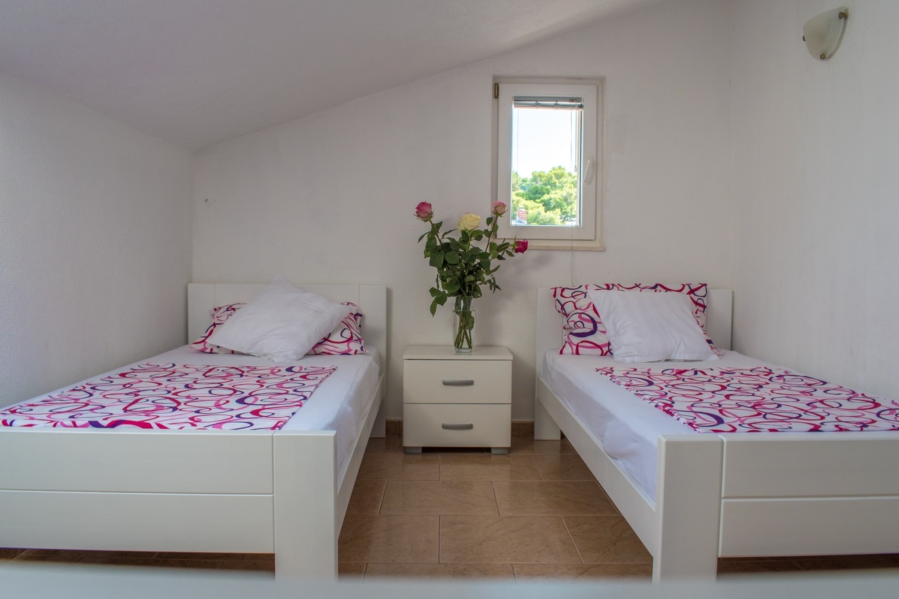 House 22156 in the town of Rogoznica, Rogoznica - North Dalmatia is located 0 m from the sea. The nearest beach to this accommodation is a concrete slabs beach. The house is categorized as "Facilities near a beach". You will be the houses only guests during your holiday, as there are no other rooms or apartments. The hosts will not be in the house for the duration of your holiday. The house owner is under no obligation to accept additional persons and pets that were not stated in the reservation request and it is necessary to report them in advance.AMENITIES Courtyard (350m2, Sitting area), Barbecue: shared, WiFi Internet, Boat mooring (Distance from the house: 2 m, Type of boat berth: shore), Hairdryer, Iron, Ironing board, Sunchairs, Baby cot LOCATION AND ACCESS Facility is situated near a local road There is no road between the property and the beach The property is located by the beach Car access possible: Yes, Narrow street: 20 m The facility is situated in relatively quiet surroundings DISTANCES Sea: 0 m Beach: 0 m Center: 1 km Shop: 550 m Urgent medical care: 9.5 km Pharmacy: 1.7 km Exchange office: 1.2 km ATMBank machine: 600 m Tourist info: 500 m Airport: 34 km Bus station: 9.5 km Gas station: 9.5 km Farmers market: 1 km