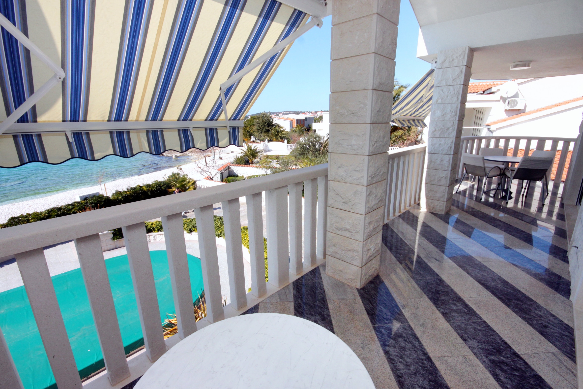 House 7557 in the town of Rogoznica, Rogoznica - North Dalmatia contains accommodation units of type Apartment (2), Studio flat (2) and is 5 m away from the sea. The nearest beach to this accommodation is a pebble beach. The house is categorized as "Facilities with a swimming pool". As the house is dividedseveral accommodation units, other guests will most likely be present during your stay. The hosts will not be in the house for the duration of your holiday. The house owner is under no obligation to accept additional persons and pets that were not stated in the reservation request and it is necessary to report them in advance.AMENITIES Courtyard (250m2, Area suitable for children, Sitting area), Parking lot (Number of parking spaces: 4, Distance from the house: In the courtyard), Pool: shared, Dimensions: 10m x 4m x 2m, Type of water: Freshwater, Barbecue: shared, WiFi Internet, Laundry service, Hairdryer, Ironing board, Baby cot LOCATION AND ACCESS The facility is not located near the road There is no road between the property and the beach The property is located by the beach Car access possible: Yes The facility is not located in quiet surroundings The property isnt surrounded by greenery DISTANCES Sea: 5 m Beach: 5 m Center: 850 m Shop: 800 m Urgent medical care: 4.5 km Pharmacy: 850 m Exchange office: 850 m ATMBank machine: 850 m Tourist info: 850 m