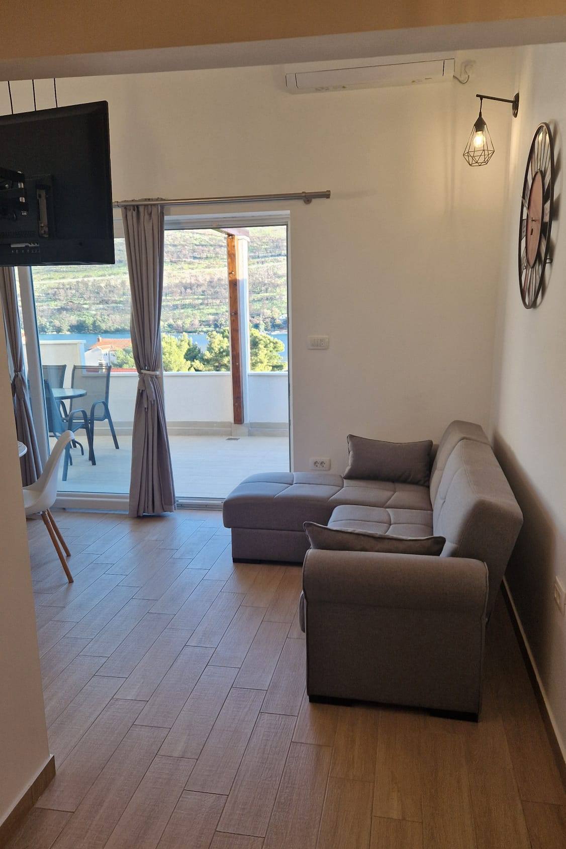 Apartment can accommodate 2 guests. Beds are situated in 1 sleeping rooms, within 38m2. Guests can use a private terrace to enjoy the warm summer evenings. The apartment offers the sea view. Food can be prepared using barbecue which is shared with other guests too. INCLUDED IN THE PRICE: tourist tax, final cleaning, air-conditioning, parking, internet, boat mooring, baby cot, iron, ironing board, hairdryer, 1 bed for children (included in the price). OBLIGATORY ADDITIONAL COSTS: short stay fee (surcharge depending on a number of booked nights: 30% - 1, 20% - 2, 10% - 3). The availability of additional services for your chosen dates of stay, as well as their prices (if none are listed) must be checked ahead of time. Any additional services not shown in the price calculation are payable directly to the property owner and only if used by the visitor. Discounts to the base price: free day 14=13 (for reservations of 14 or more days you get one free day for the stay until 31122026).