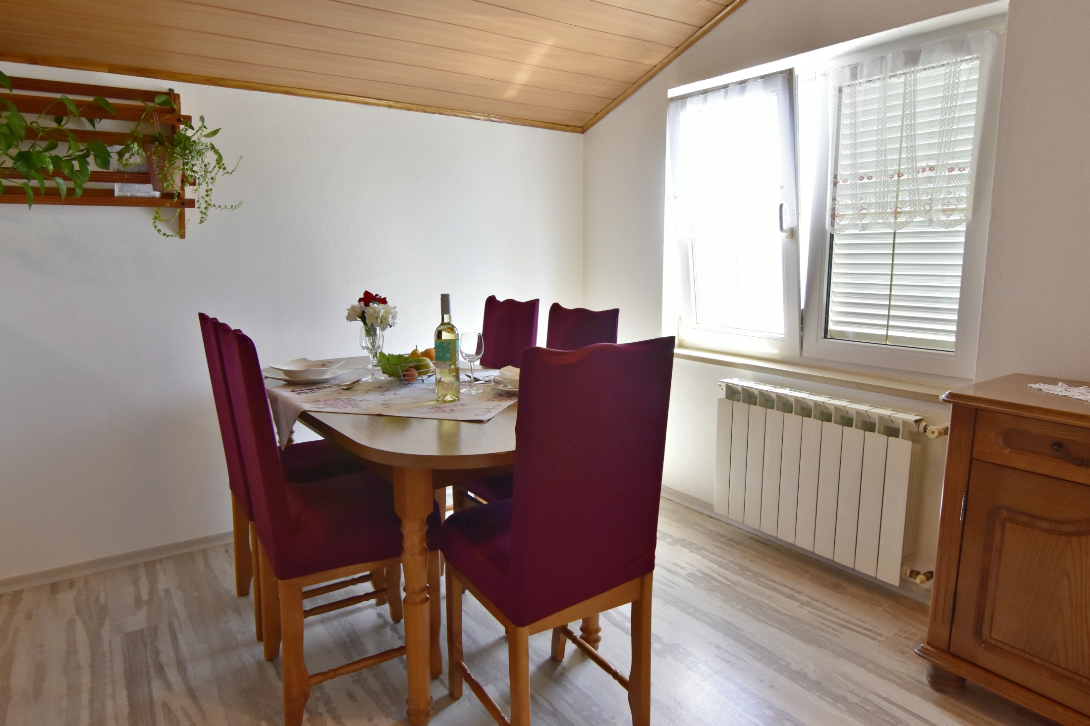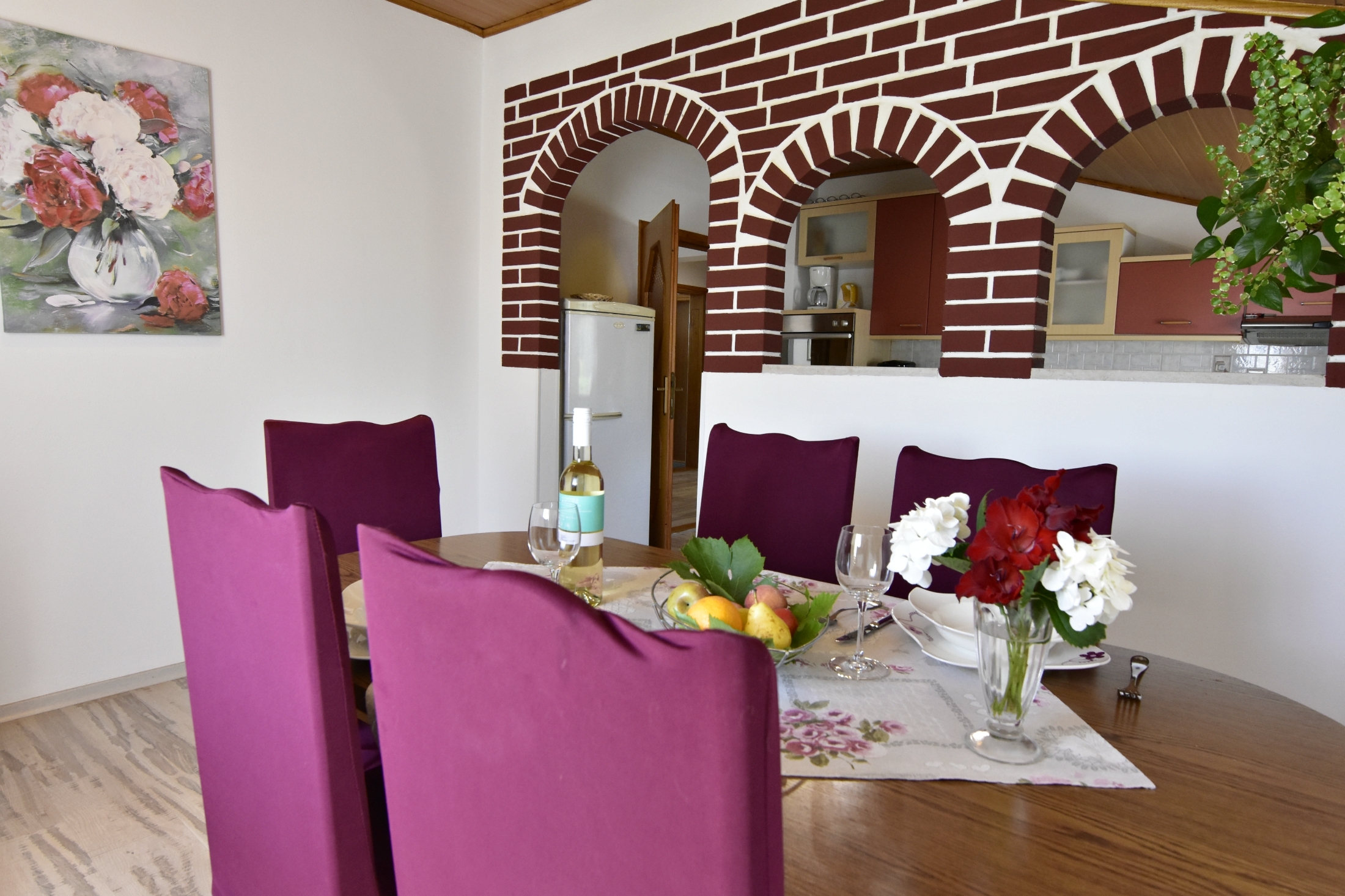 Apartment can accommodate 4 guests. Beds are situated in 1 sleeping rooms, but also in the living room, within 59m2. Guests can use a private terrace to enjoy the warm summer evenings. Food can be prepared using barbecue which is shared with other guests too. INCLUDED IN THE PRICE: tourist tax, final cleaning, air-conditioning, parking, internet, hairdryer. The availability of additional services for your chosen dates of stay, as well as their prices (if none are listed) must be checked ahead of time. Any additional services not shown in the price calculation are payable directly to the property owner and only if used by the visitor.