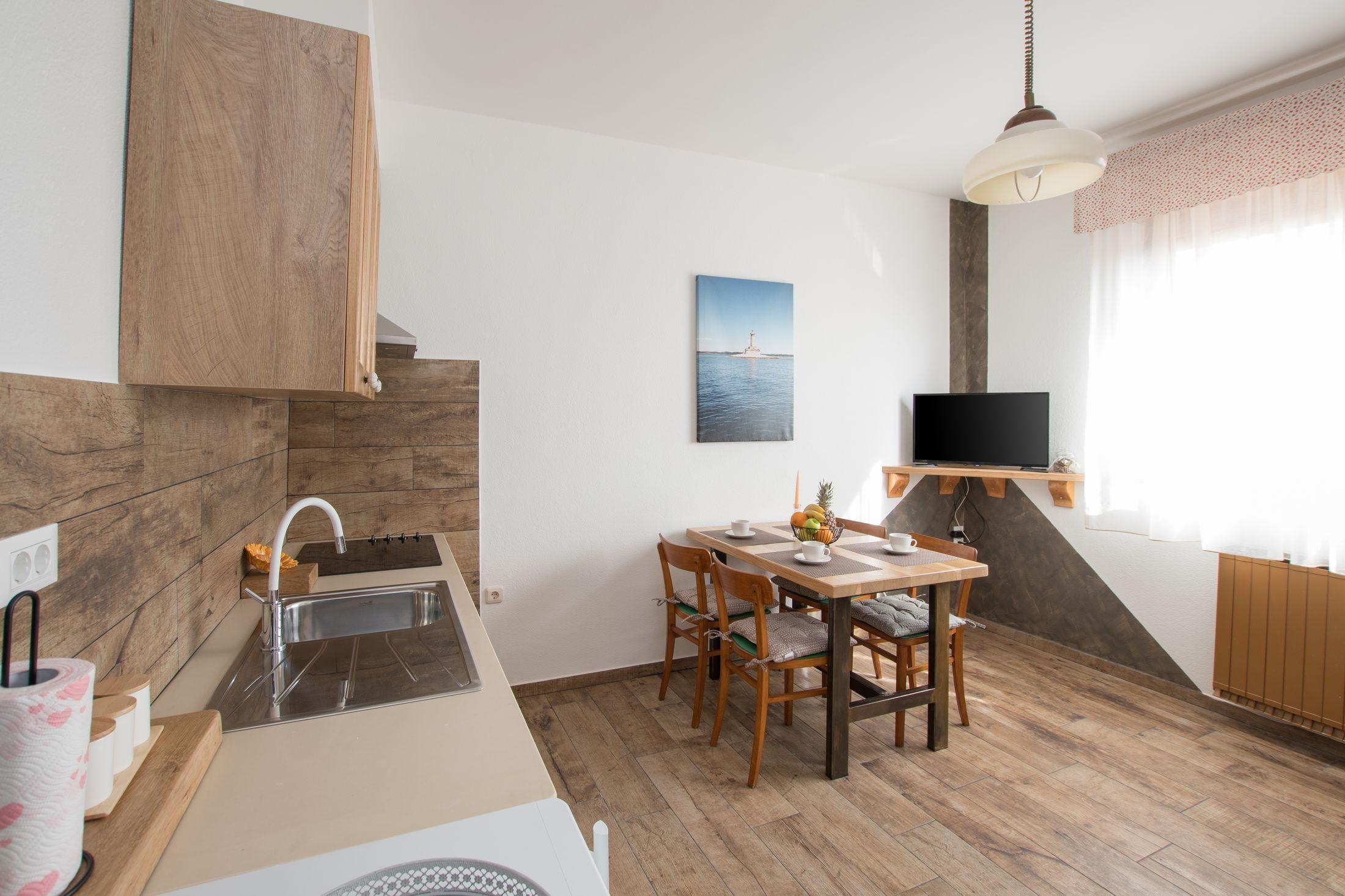 Apartment can accommodate 3 guests. Beds are situated in 1 sleeping rooms, but also in the living room, within 34m2. Guests can use a private terrace to enjoy the warm summer evenings. INCLUDED IN THE PRICE: tourist tax, final cleaning, air-conditioning, parking, internet, hairdryer. The availability of additional services for your chosen dates of stay, as well as their prices (if none are listed) must be checked ahead of time. Any additional services not shown in the price calculation are payable directly to the property owner and only if used by the visitor.