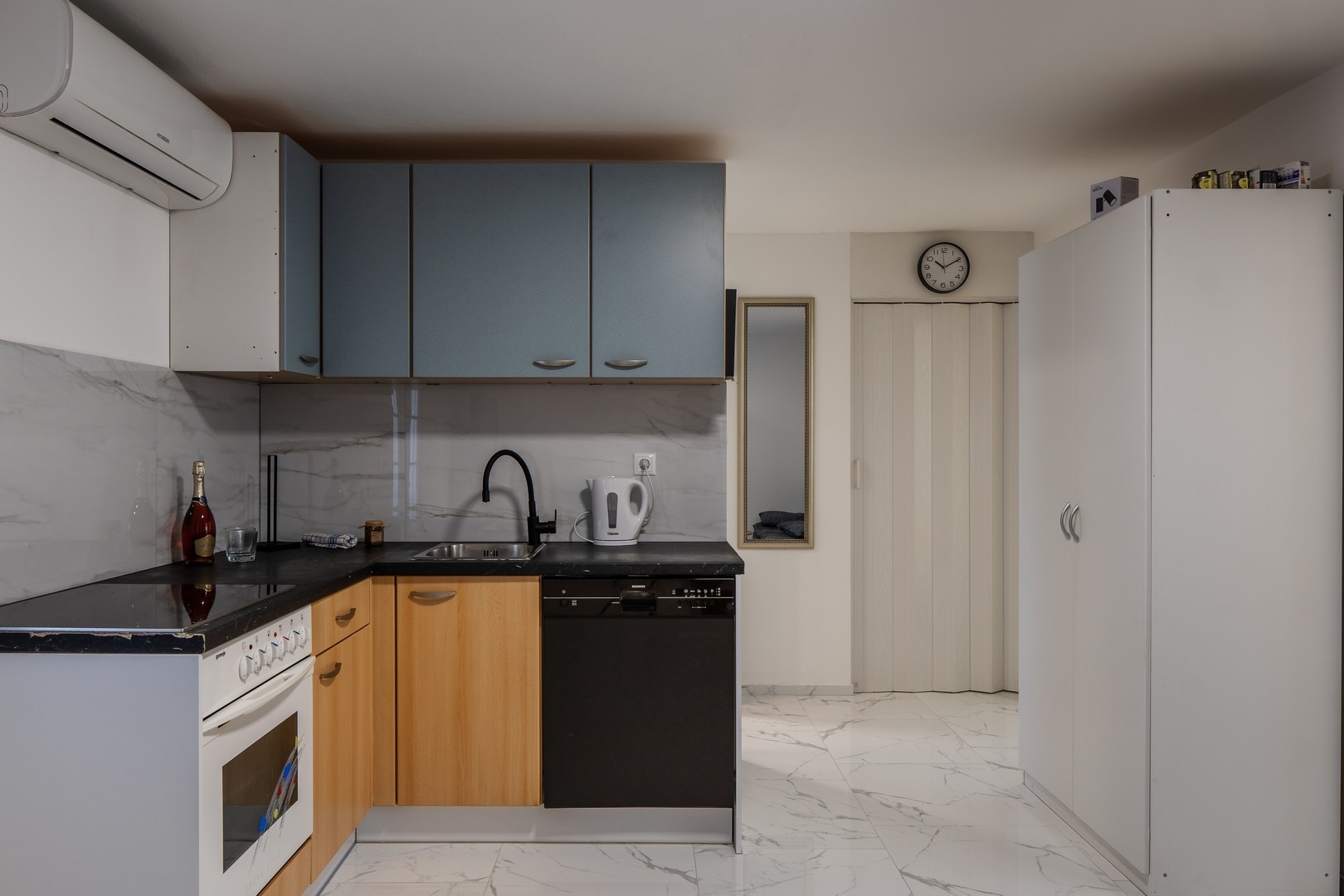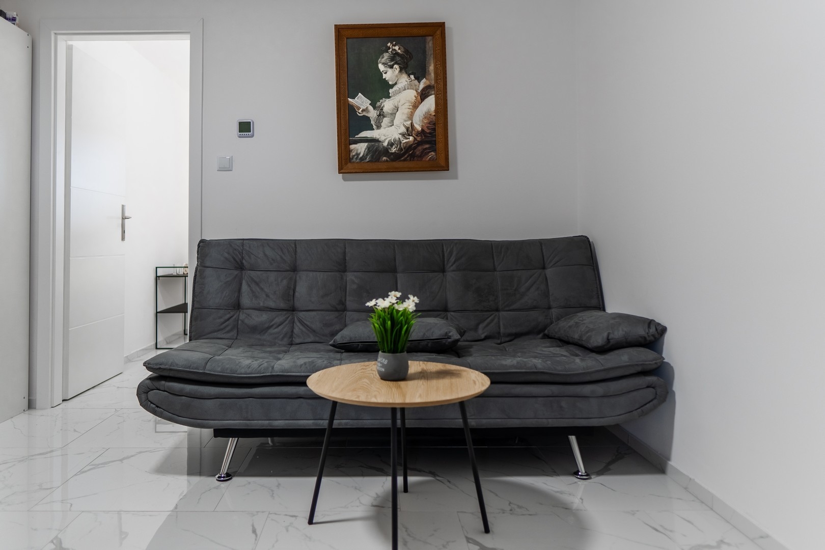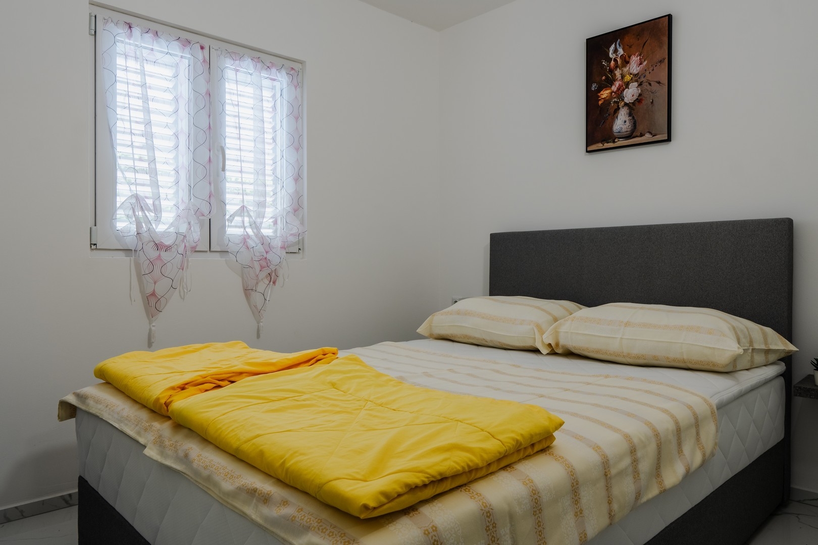 Apartment can accommodate 4 guests. Beds are situated in 2 sleeping rooms, within 37m2. Guests can use a private terrace to enjoy the warm summer evenings. Food can be prepared using barbecue which is shared with other guests too. INCLUDED IN THE PRICE: tourist tax, final cleaning, air-conditioning, parking, internet, iron, ironing board, hairdryer. The availability of additional services for your chosen dates of stay, as well as their prices (if none are listed) must be checked ahead of time. Any additional services not shown in the price calculation are payable directly to the property owner and only if used by the visitor.
