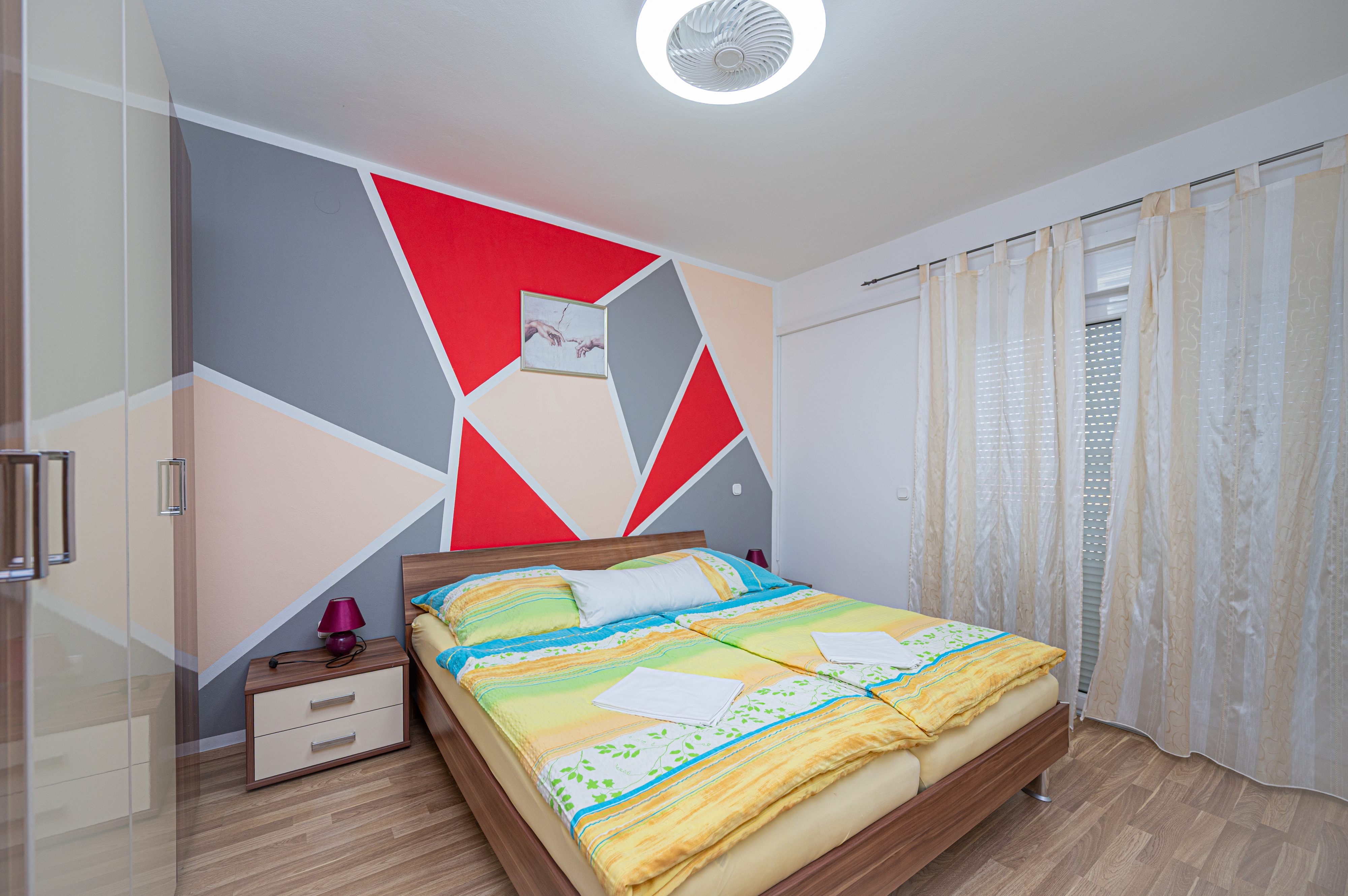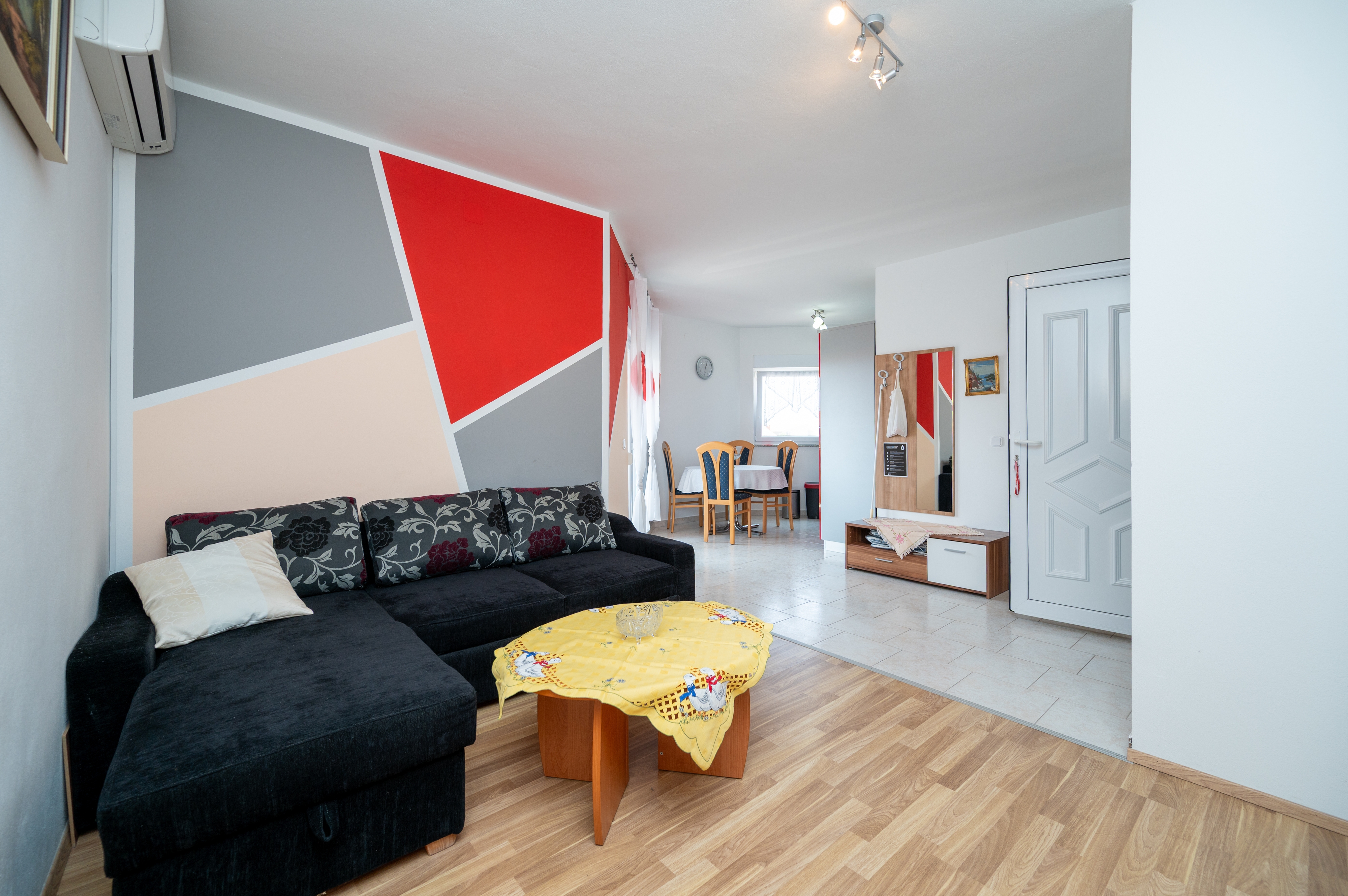 Apartment can accommodate 4 guests. Beds are situated in 1 sleeping rooms, but also in the living room, within 34m2. Guests can use a private terrace to enjoy the warm summer evenings. Food can be prepared using barbecue which is shared with other guests too. INCLUDED IN THE PRICE: tourist tax, final cleaning, air-conditioning, parking, internet, baby cot, additional bed, iron, ironing board, hairdryer, sunshade. The availability of additional services for your chosen dates of stay, as well as their prices (if none are listed) must be checked ahead of time. Any additional services not shown in the price calculation are payable directly to the property owner and only if used by the visitor.