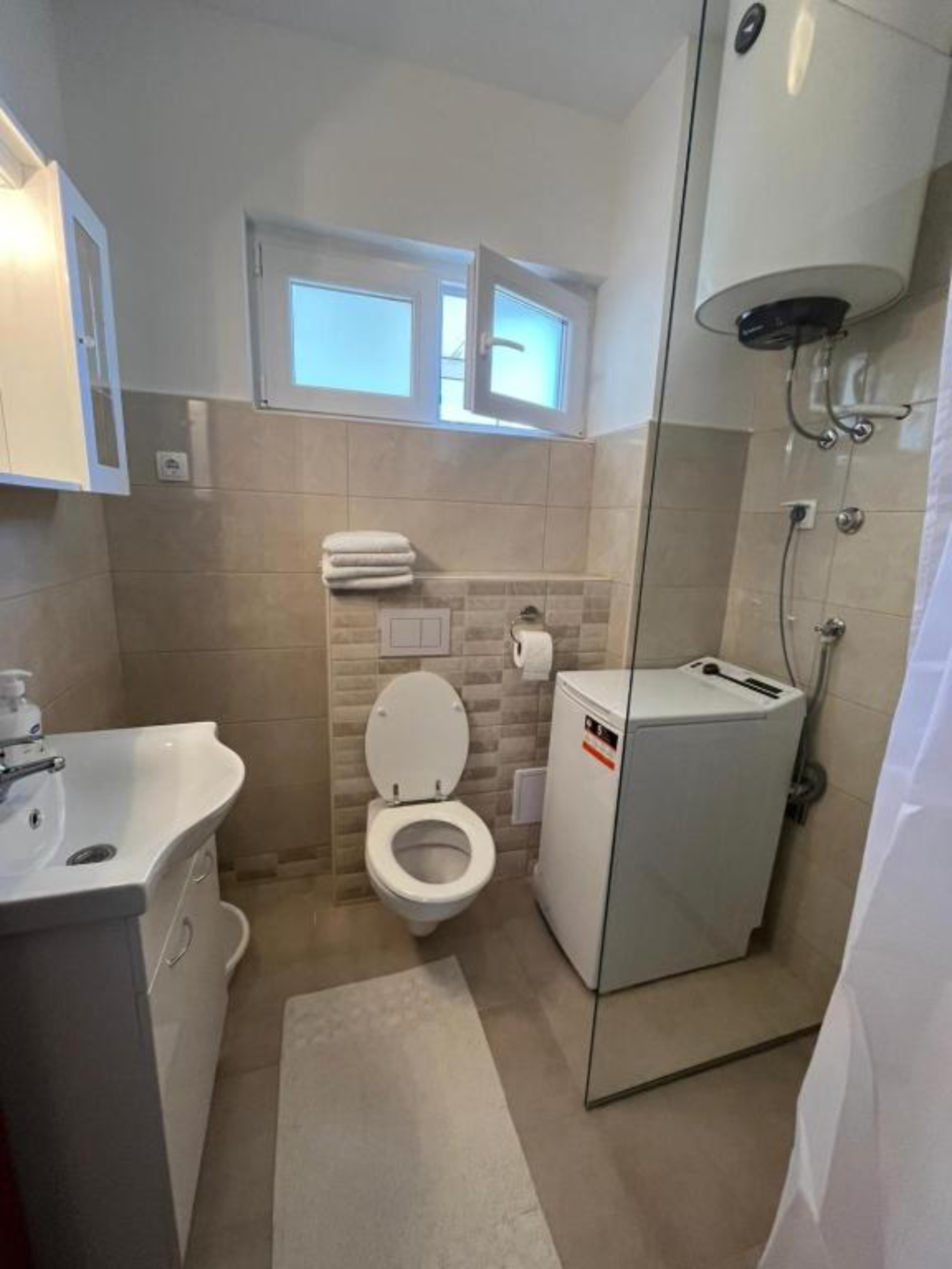 Apartment can accommodate 4 guests. Beds are situated in 2 sleeping rooms, within 49m2. Guests can use a private terrace to enjoy the warm summer evenings. Food can be prepared using barbecue which is shared with other guests too. INCLUDED IN THE PRICE: tourist tax, final cleaning, air-conditioning, parking, internet, iron, ironing board, hairdryer, sunshade. OBLIGATORY ADDITIONAL COSTS: short stay fee (surcharge depending on a number of booked nights: 30% - 1, 20% - 2, 10% - 3). OPTIONAL ADDITIONAL COSTS: additional bed (€10.00 per night). The availability of additional services for your chosen dates of stay, as well as their prices (if none are listed) must be checked ahead of time. Any additional services not shown in the price calculation are payable directly to the property owner and only if used by the visitor. Discounts to the base price: free day 14=13 (for reservations of 14 or more days you get one free day for the stay until 31122026).