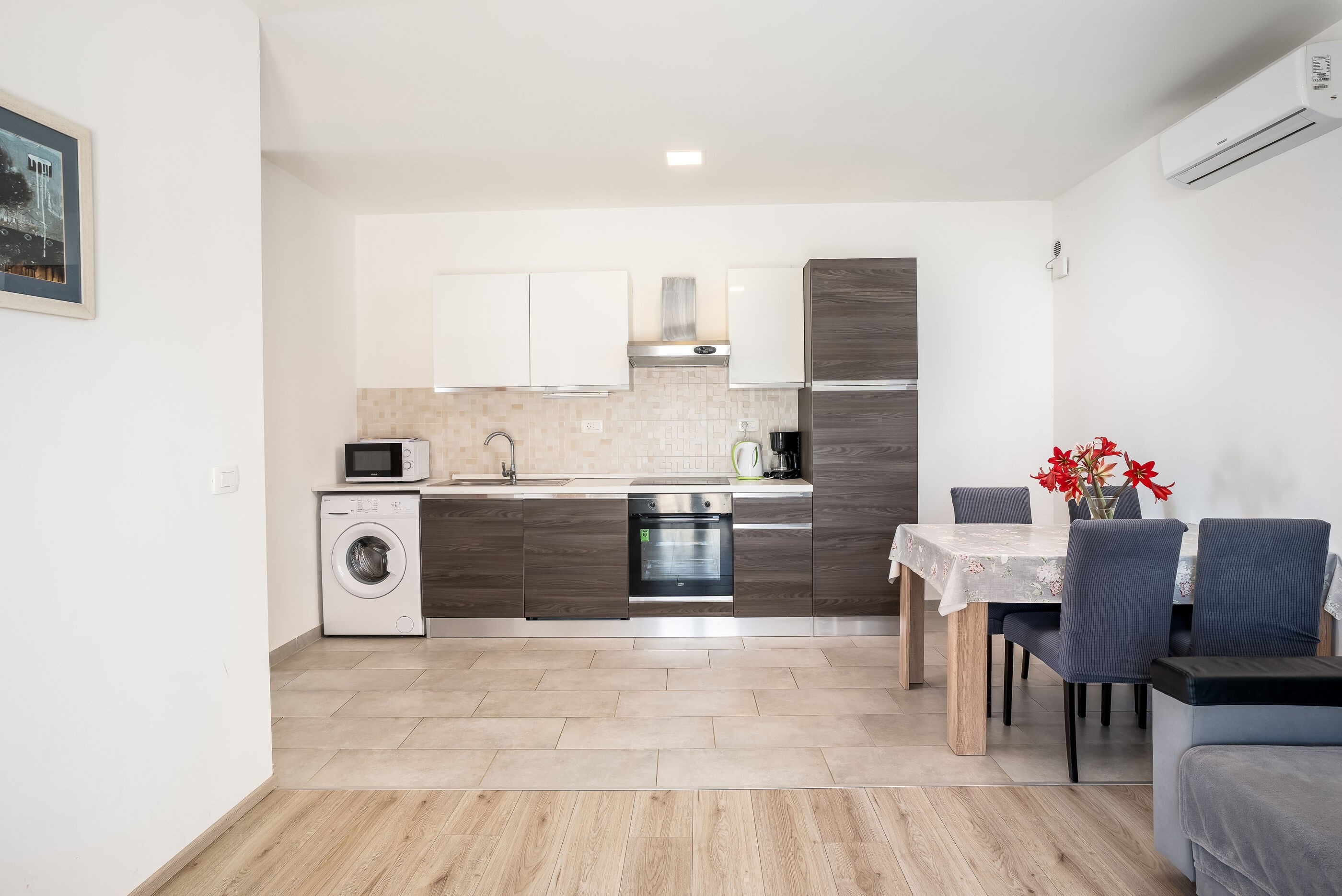 Apartment can accommodate 3 guests. Beds are situated in 1 sleeping rooms, but also in the living room, within 41m2. Guests can use a private terrace to enjoy the warm summer evenings. The apartment offers the sea view. Food can be prepared using barbecue which is shared with other guests too. This accommodation unit welcomes pets at an additional charge. INCLUDED IN THE PRICE: tourist tax, final cleaning, air-conditioning, parking, internet, baby cot, iron, ironing board, hairdryer. OPTIONAL ADDITIONAL COSTS: pets (ā¬7.00 per night). The availability of additional services for your chosen dates of stay, as well as their prices (if none are listed) must be checked ahead of time. Any additional services not shown in the price calculation are payable directly to the property owner and only if used by the visitor.