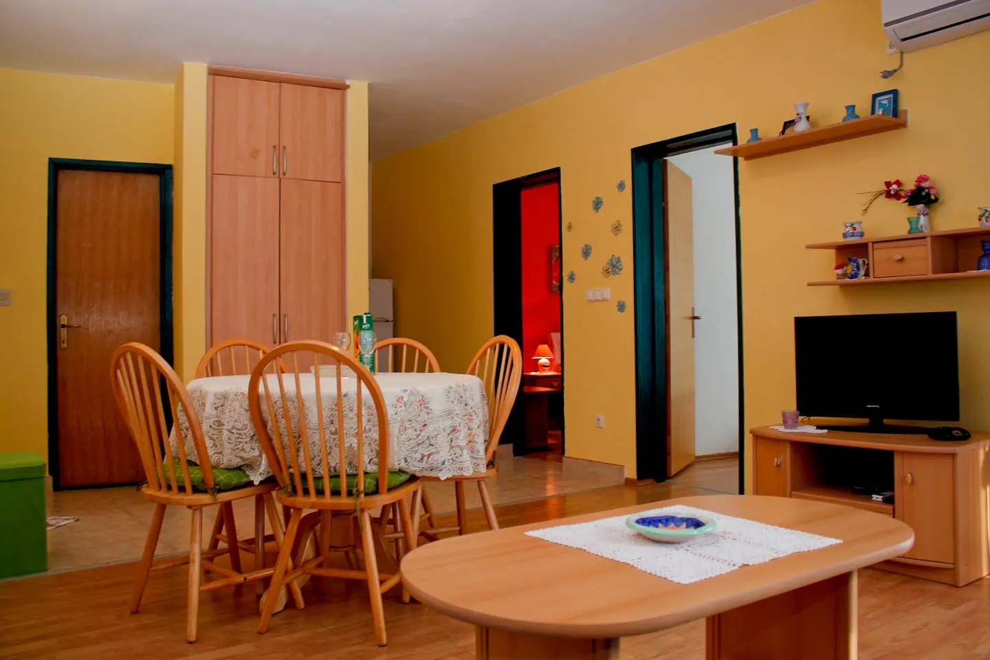 Apartment can accommodate 5 guests. Beds are situated in 2 sleeping rooms, but also in the living room, within 45m2. Guests can use a private balcony to enjoy the warm summer evenings. Food can be prepared using barbecue which is shared with other guests too. INCLUDED IN THE PRICE: tourist tax, final cleaning, air-conditioning, parking, internet, baby cot, iron, ironing board, hairdryer. OBLIGATORY ADDITIONAL COSTS: short stay fee (surcharge depending on a number of booked nights: 30% - 1, 20% - 2, 10% - 3). The availability of additional services for your chosen dates of stay, as well as their prices (if none are listed) must be checked ahead of time. Any additional services not shown in the price calculation are payable directly to the property owner and only if used by the visitor.