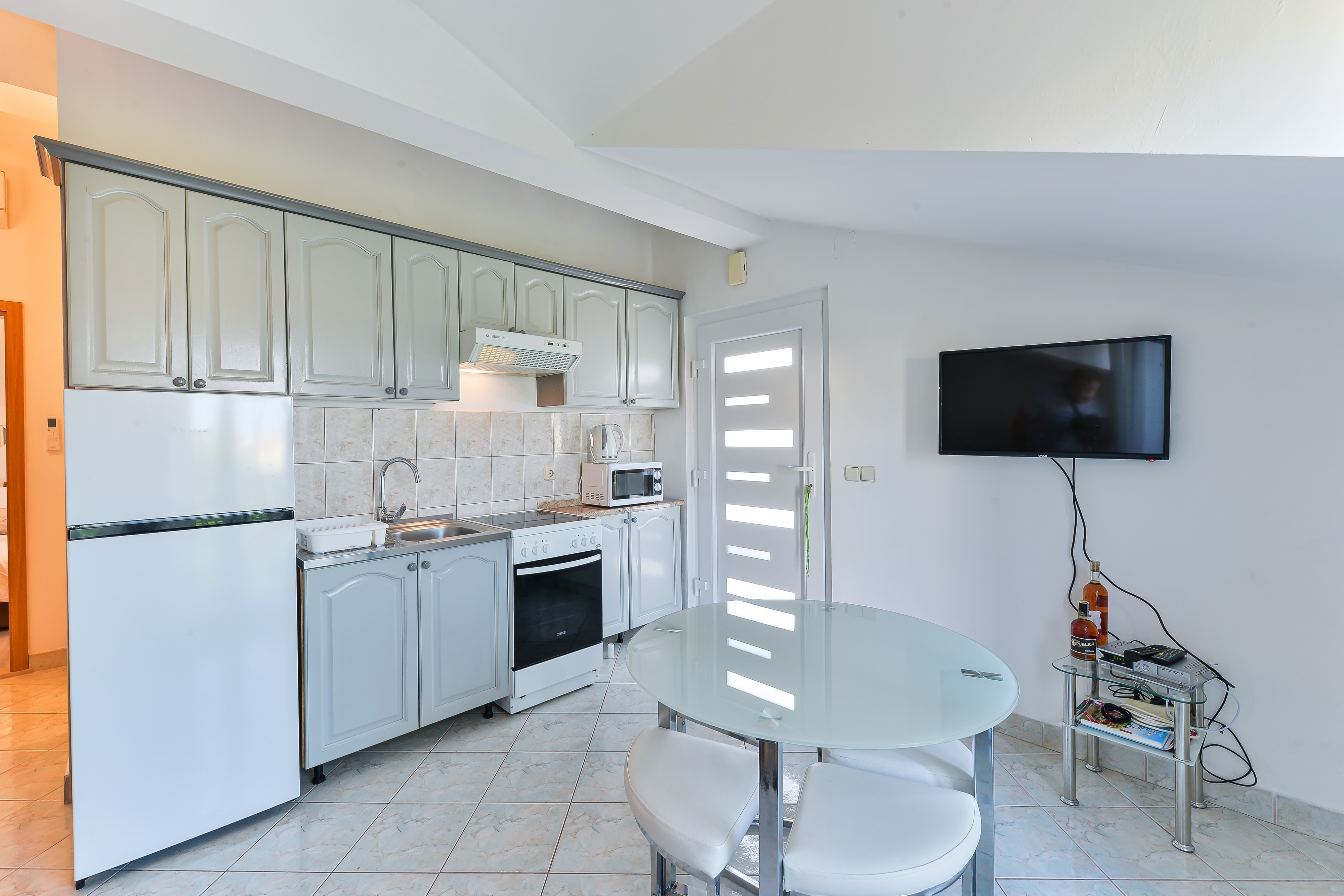 Apartment can accommodate 3 guests. Beds are situated in 1 sleeping rooms, within 34m2. Guests can use a private balcony to enjoy the warm summer evenings. Food can be prepared using barbecue which is shared with other guests too. Shared pool is on disposal during stay. INCLUDED IN THE PRICE: tourist tax, final cleaning, air-conditioning, pool, parking, internet, baby cot, hairdryer. OBLIGATORY ADDITIONAL COSTS: short stay fee (surcharge depending on a number of booked nights: 30% - 1, 20% - 2, 10% - 3). The availability of additional services for your chosen dates of stay, as well as their prices (if none are listed) must be checked ahead of time. Any additional services not shown in the price calculation are payable directly to the property owner and only if used by the visitor.