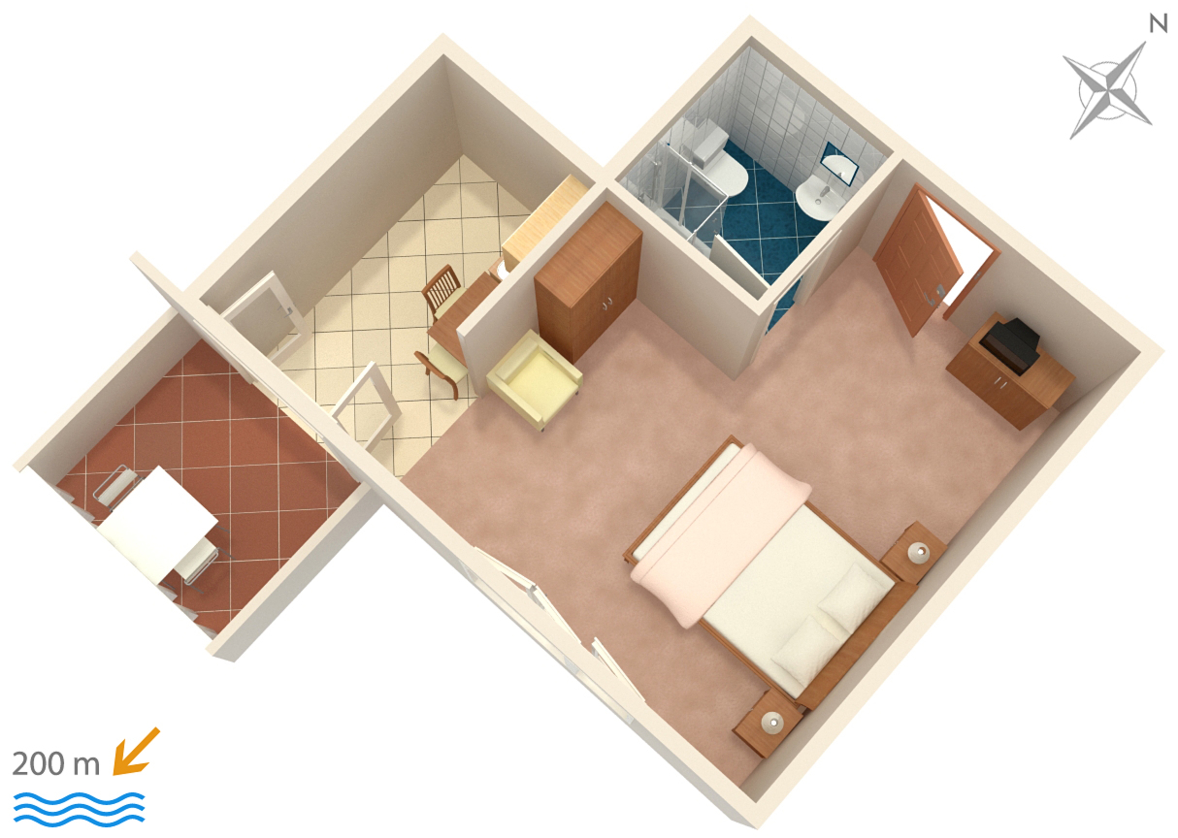 Studio flat can accommodate 2 guests. Beds are situated in 1 sleeping rooms, within 25m2. Guests can use a private balcony to enjoy the warm summer evenings. The studio offers the sea view. Food can be prepared using barbecue which is shared with other guests too. INCLUDED IN THE PRICE: tourist tax, final cleaning, air-conditioning, parking, internet, portable barbecue, 1 bed for children (included in the price). OBLIGATORY ADDITIONAL COSTS: short stay fee (surcharge depending on a number of booked nights: 30% - 1, 20% - 2, 10% - 3). The availability of additional services for your chosen dates of stay, as well as their prices (if none are listed) must be checked ahead of time. Any additional services not shown in the price calculation are payable directly to the property owner and only if used by the visitor.
